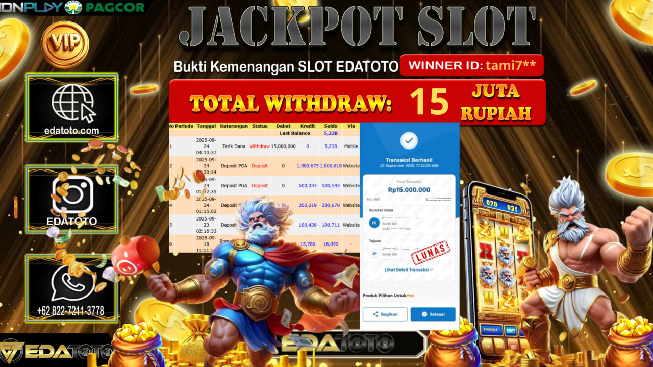 Selamat Kepada Pemilik user ID : tami7** Hari/Tanggal : Rabu/ 24, September 2025 Jackpot : Rp. 15.000.000 JT Permainan : . . .