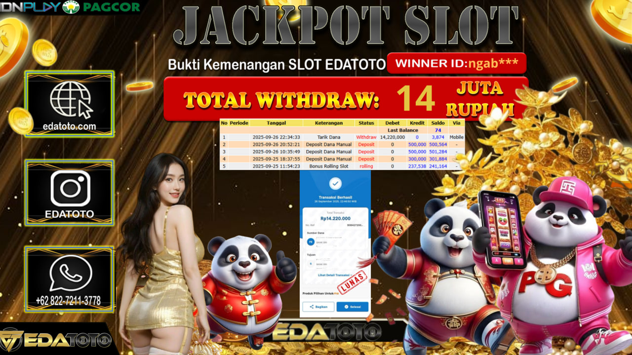 Selamat Kepada Pemilik user ID : ngab*** Hari/Tanggal : Sabtu/ 26, September 2025 Jackpot : Rp. 14.220.000 JT Permainan : . . .