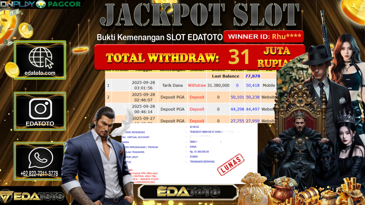 Selamat Kepada Pemilik user ID : Rhu**** Hari/Tanggal : minggu/ 28, September 2025 Jackpot : Rp. 31.380.000 JT Permainan : . . .