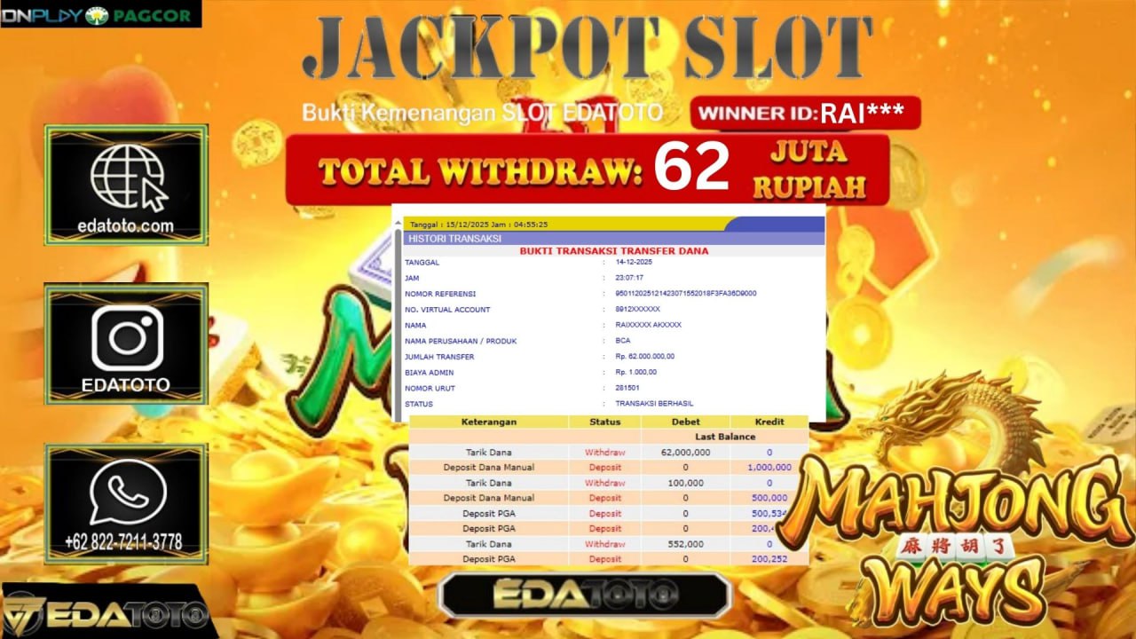 Selamat Kepada Pemilik user ID : RARA** Hari/Tanggal :kamis/ 15, Desember 2025 Jackpot : Rp. 55,000,000 JT Withdraw : 55,000,000 . . .