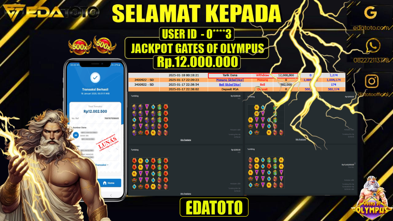 Selamat Kepada Pemilik user ID : IK***0 Hari/Tanggal : Minggu / 25 , JANUARY 2025 Jackpot : Rp. 24.292.000 JT . . .