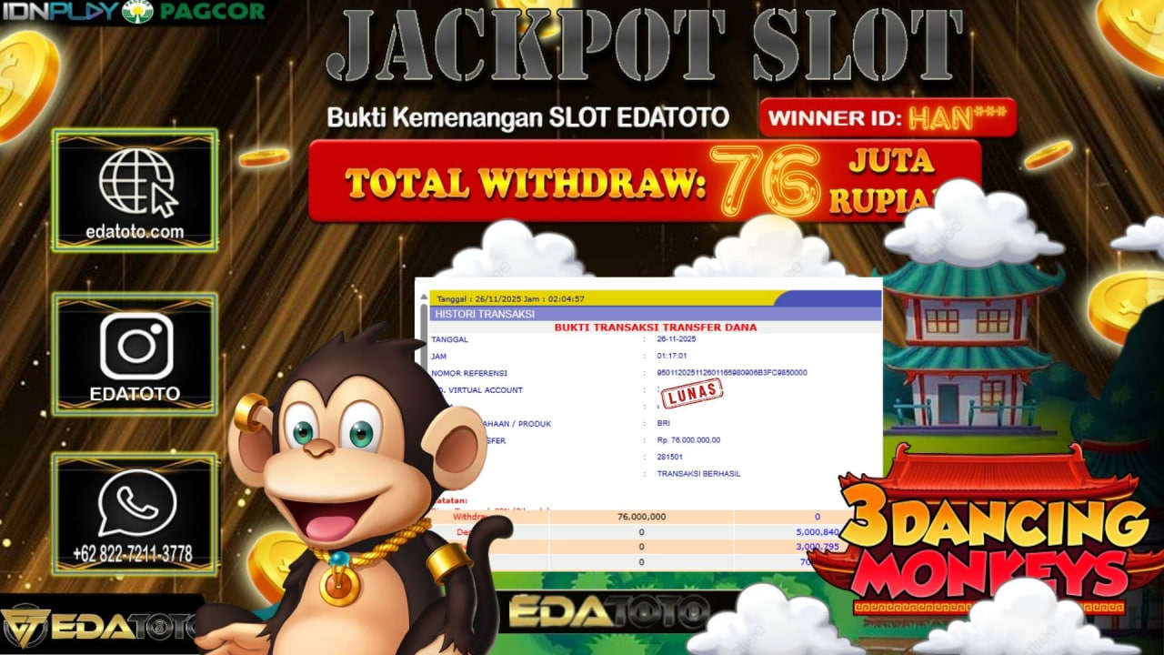 Selamat Kepada Pemilik user ID : ARD*** Hari/Tanggal :Selasa / 27, November 2025 Jackpot : Rp. 85,251,000 JT Withdraw :71,000,000 . . .