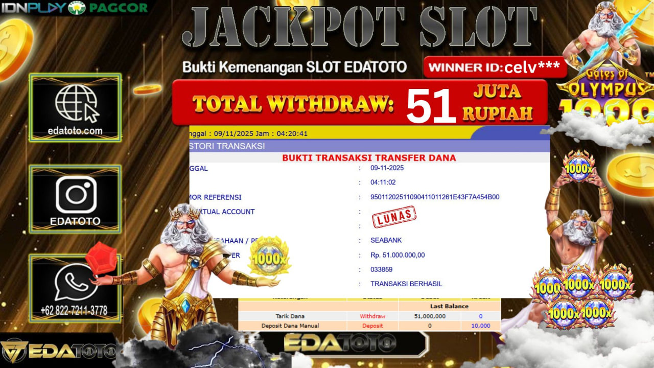 Selamat Kepada Pemilik user ID : celv*** Hari/Tanggal : JUMAT / 7, November 2025 Jackpot : Rp. 51,000,000 JT Withdraw :51,000,000 . . .