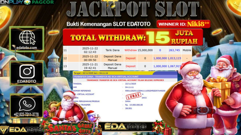Selamat kepada member setia EDATOTO telah mendapatkan JP Bermain Di : SANTA’S GREAT GIFTS